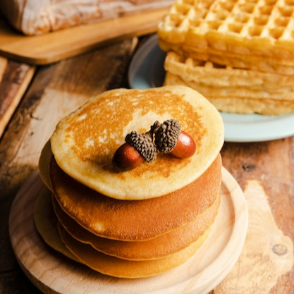 Waffle o Hot Cakes Esponjositos 3 Pzas Y Cafe