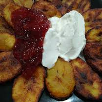 platanos fritos(300 grms peso en crudo) maduros acompañados de mermelada con dos aderezos a su preferencia lechera,cajeta,miel,maple, lo que guste