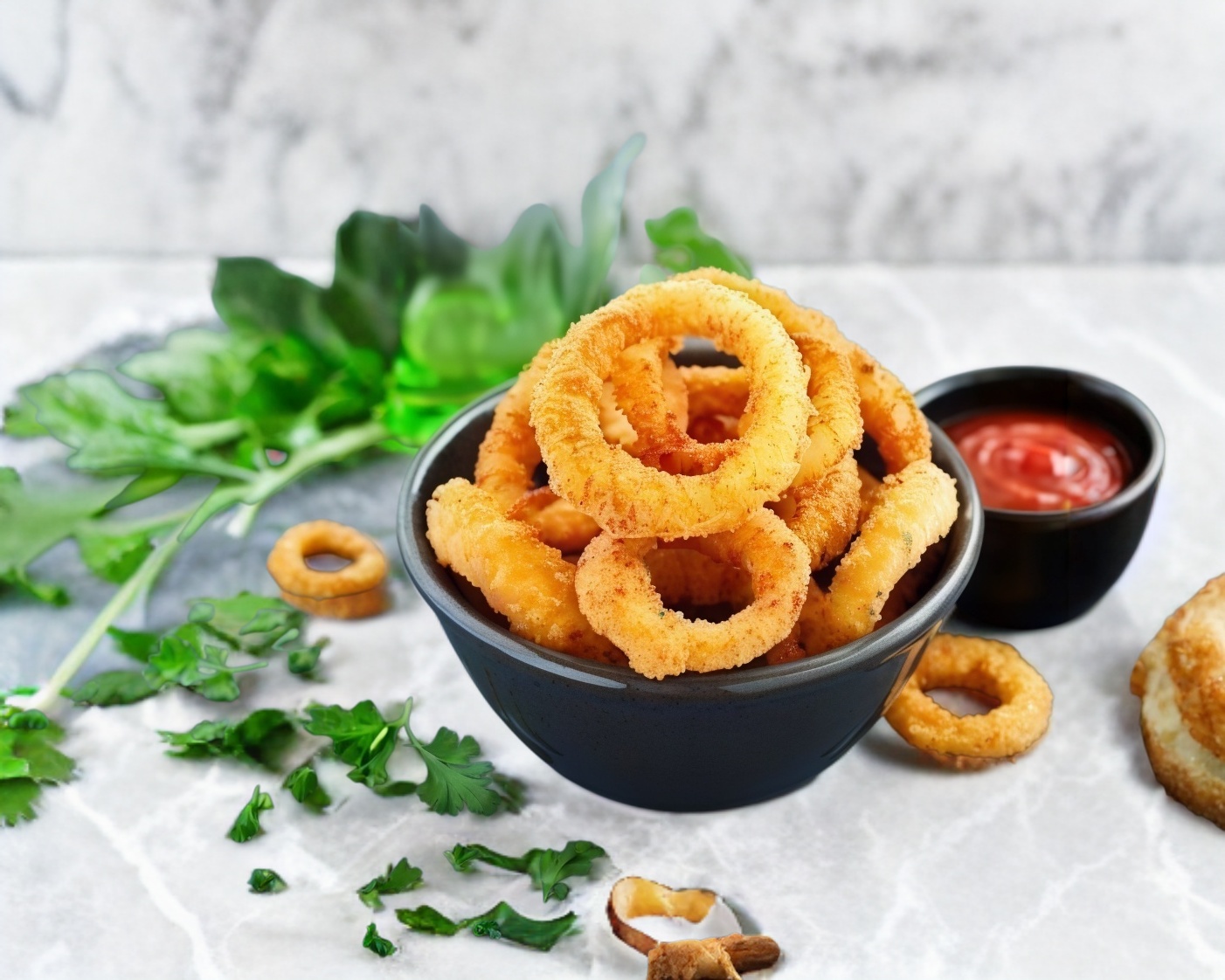 10 aros de cebolla acompañados del aderezo de tu elección
