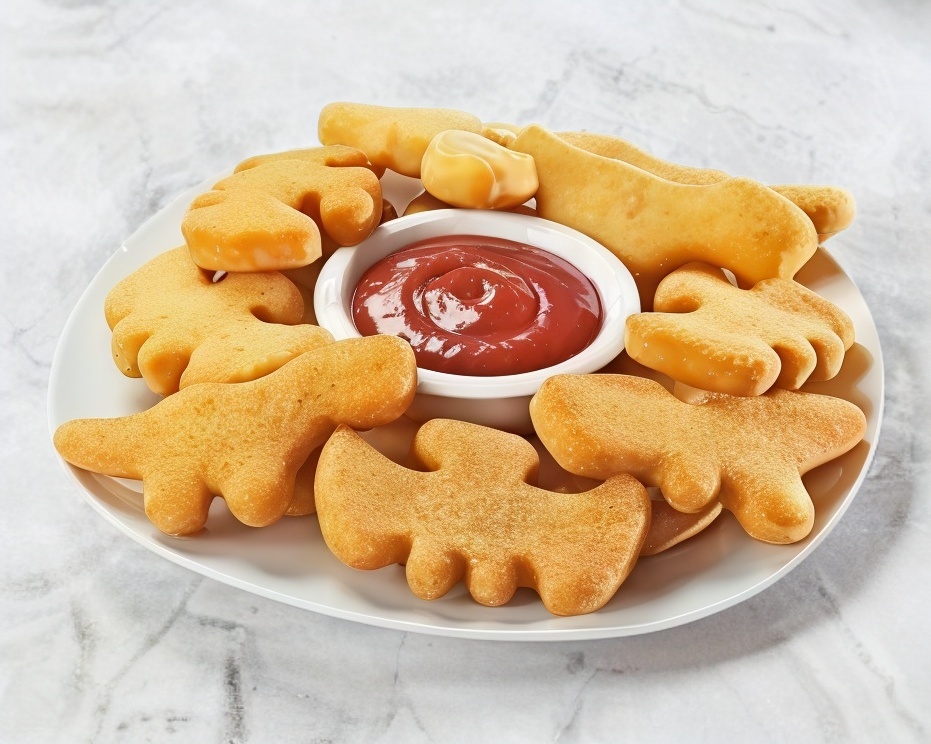 200 gramos de nuggets de dinosaurio acompañados del aderezo de tu elección