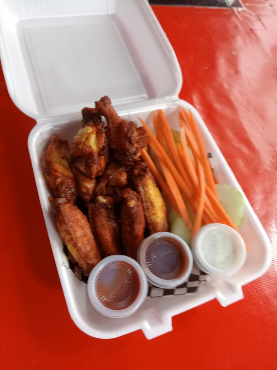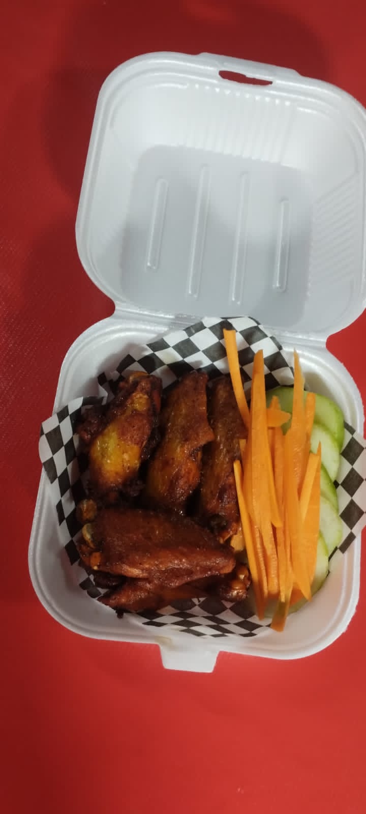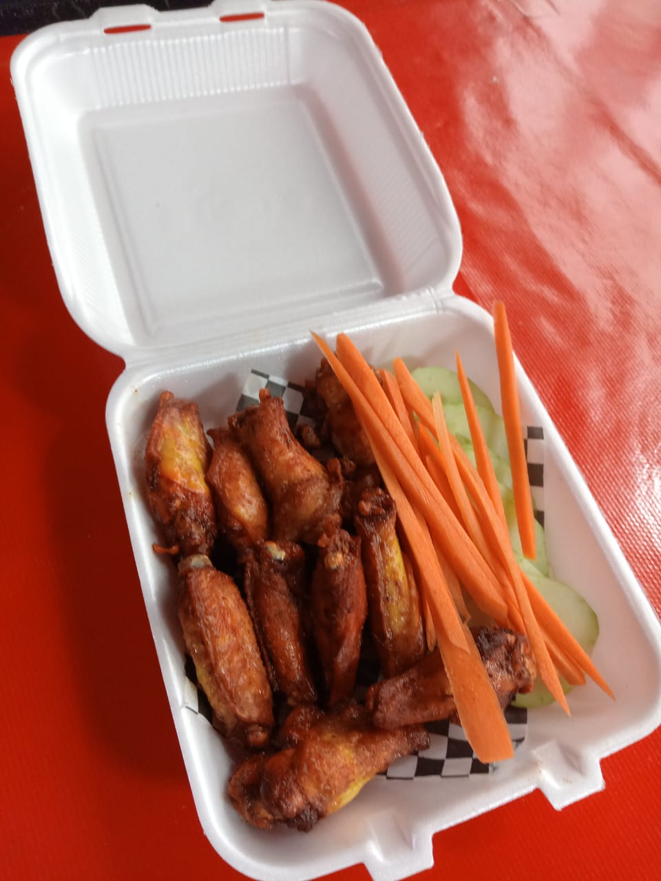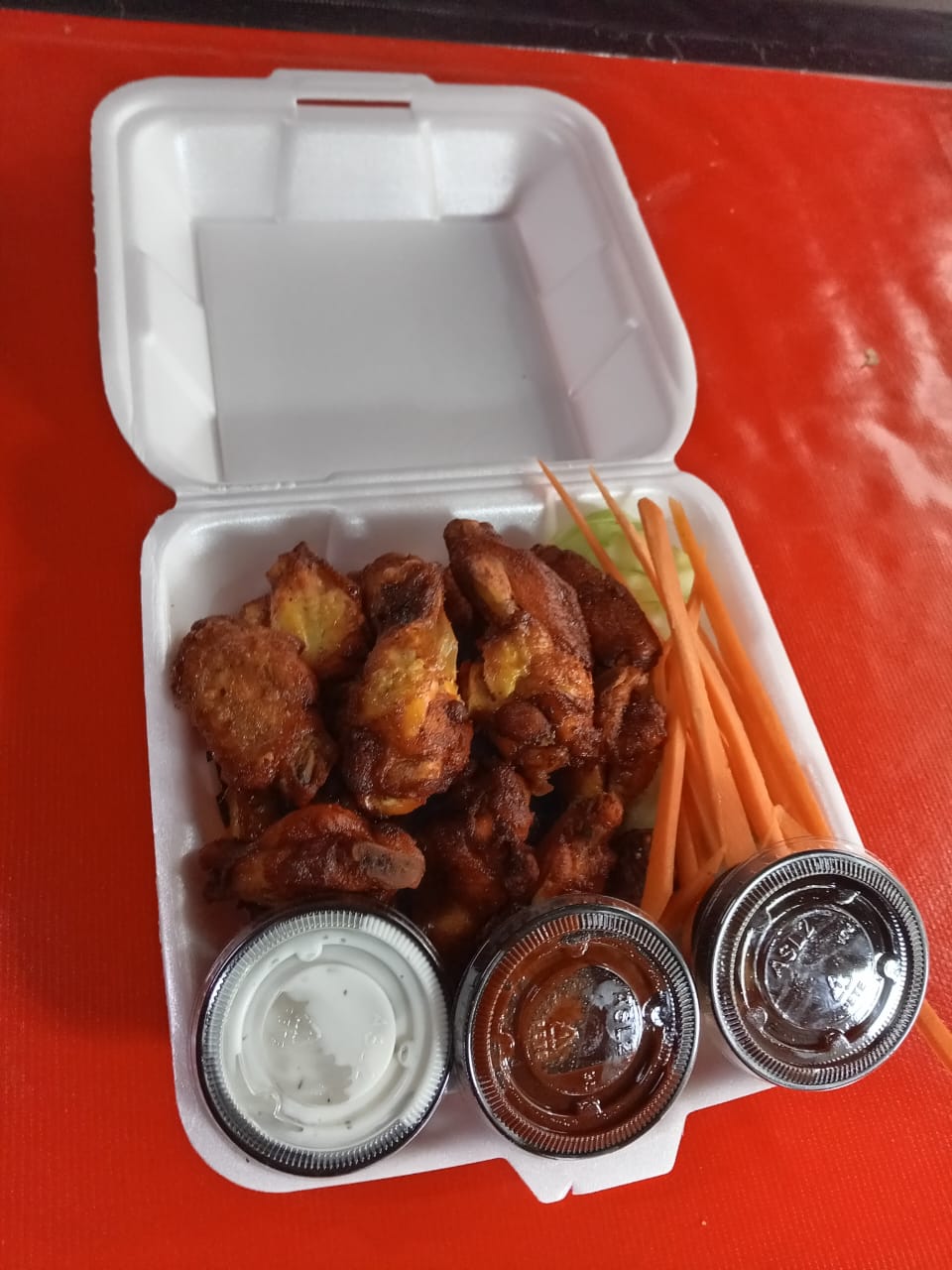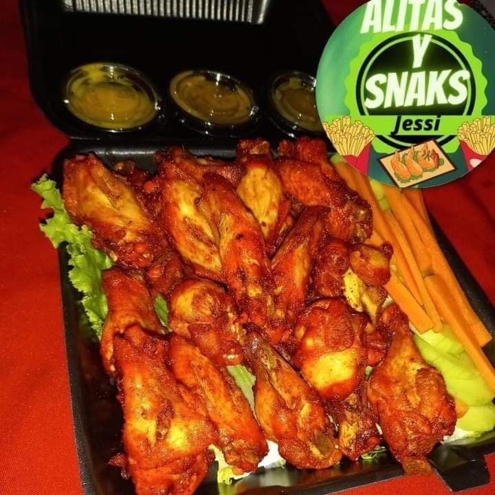 Deliciosas alitas marinadas y fritas acompañadas del aderezo o sabor de tu elección incluye vegetales.
