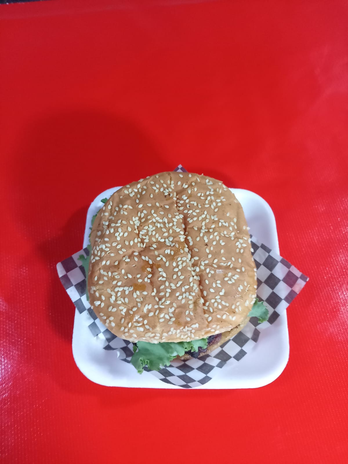 Delicioso pan con carne de rez tocino y queso derretido de hebra.