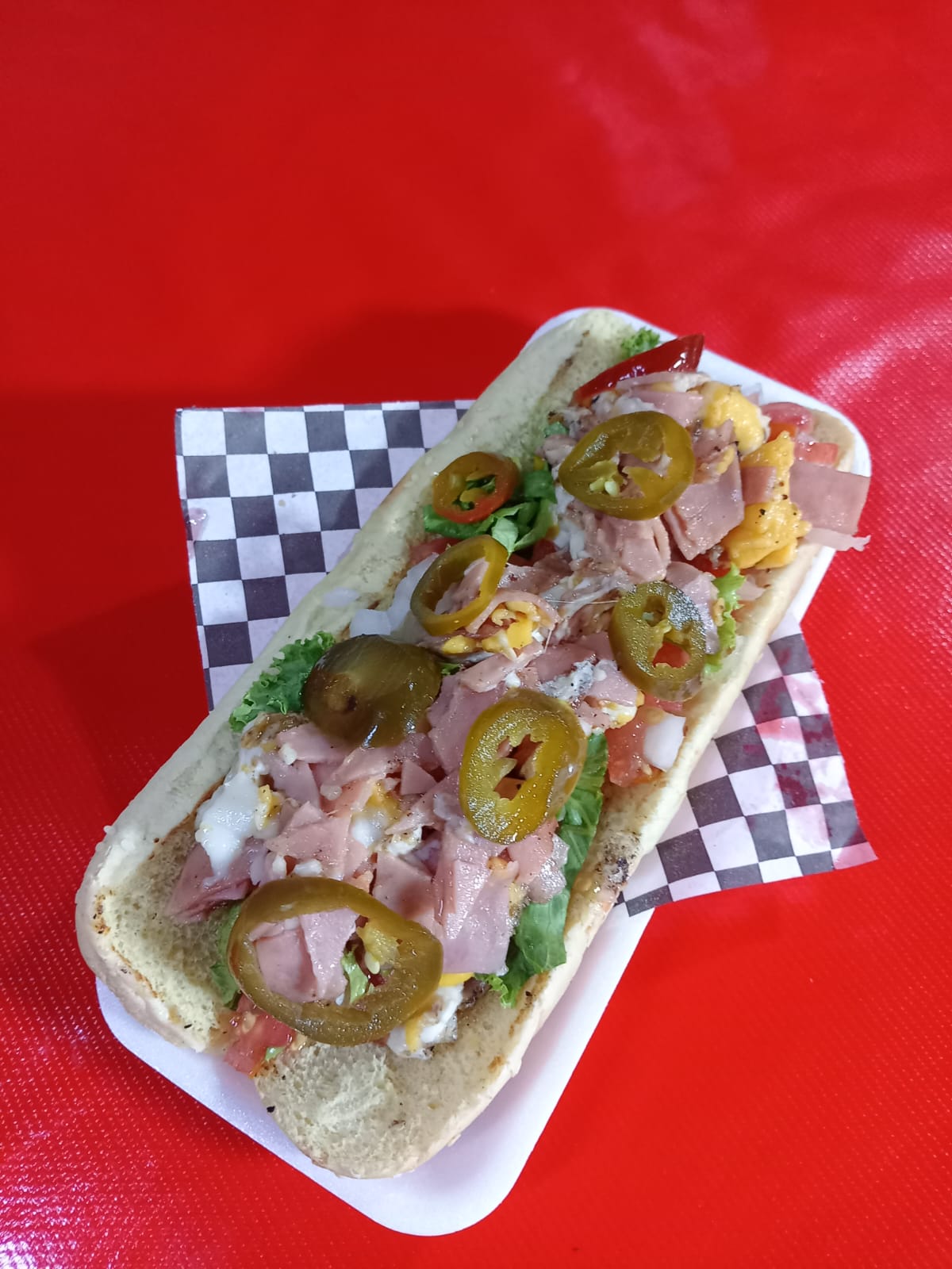 Delicioso pan con carne de rez piña jamón y queso de hebra.