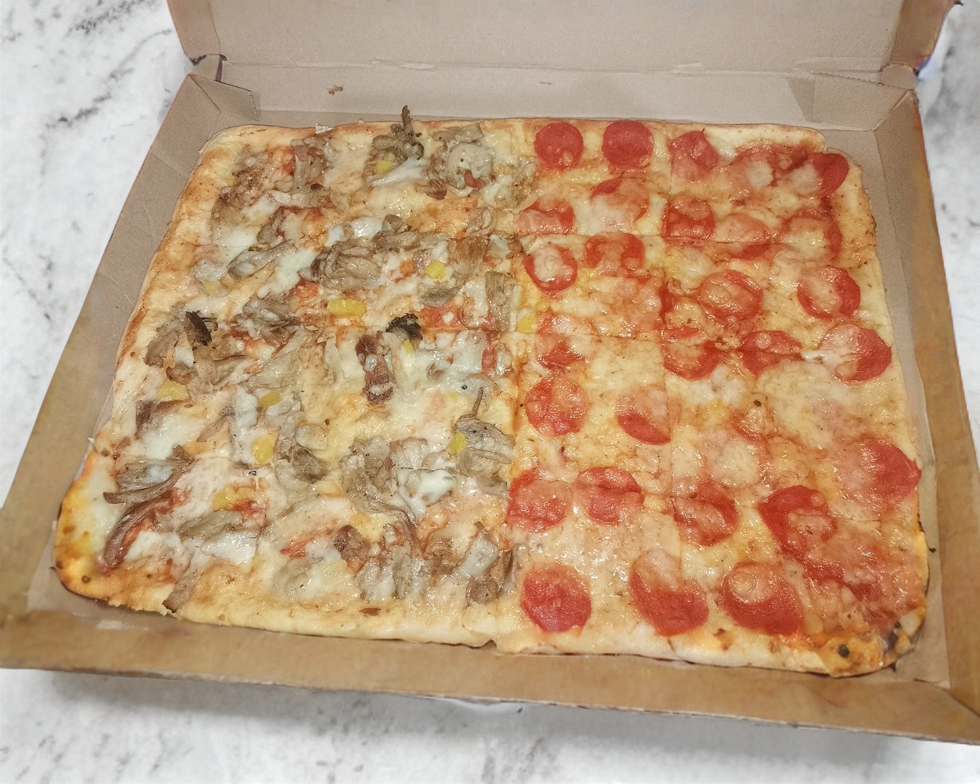 Pizza Cuadrada MItad Súper Árabe Mitad Peperoni