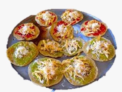 4 tortillas de salsa Verde y roja con pollo y cebolla.