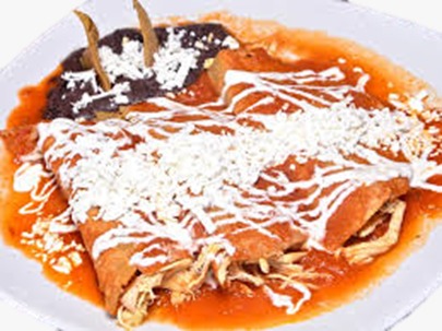 Enchiladas rellenas de pollo, queso y crema, bañadas con salsa de tu elección. Incluye 1 Agua de sabor frutas