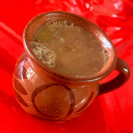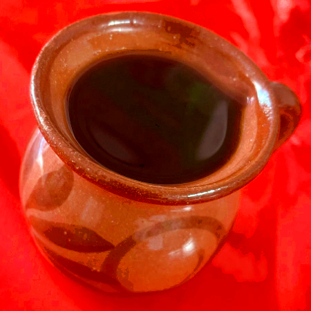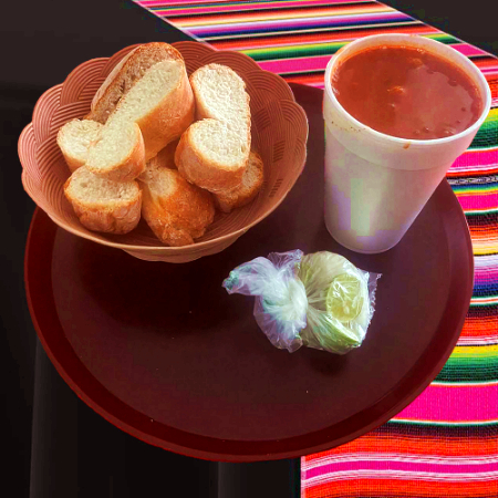 Mole de panza casero con chile guajillo, servido caliente (500 mL).
