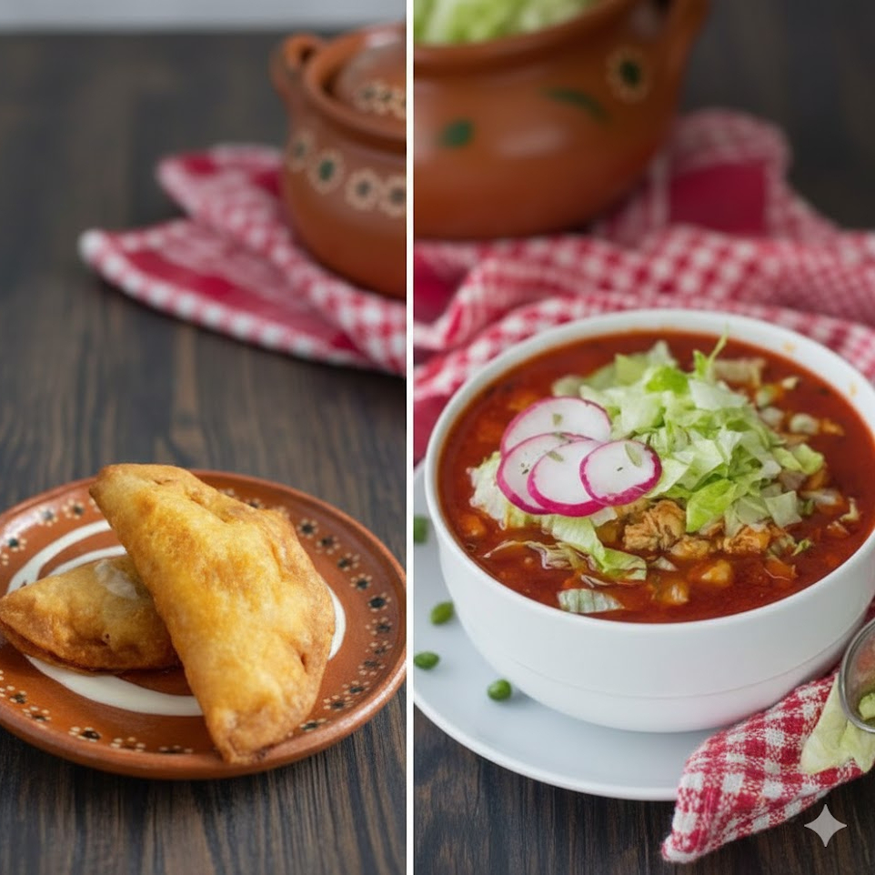Molote de Queso Blanco*1 + Pozole Rojo de Pollo 1/2 Litro*1