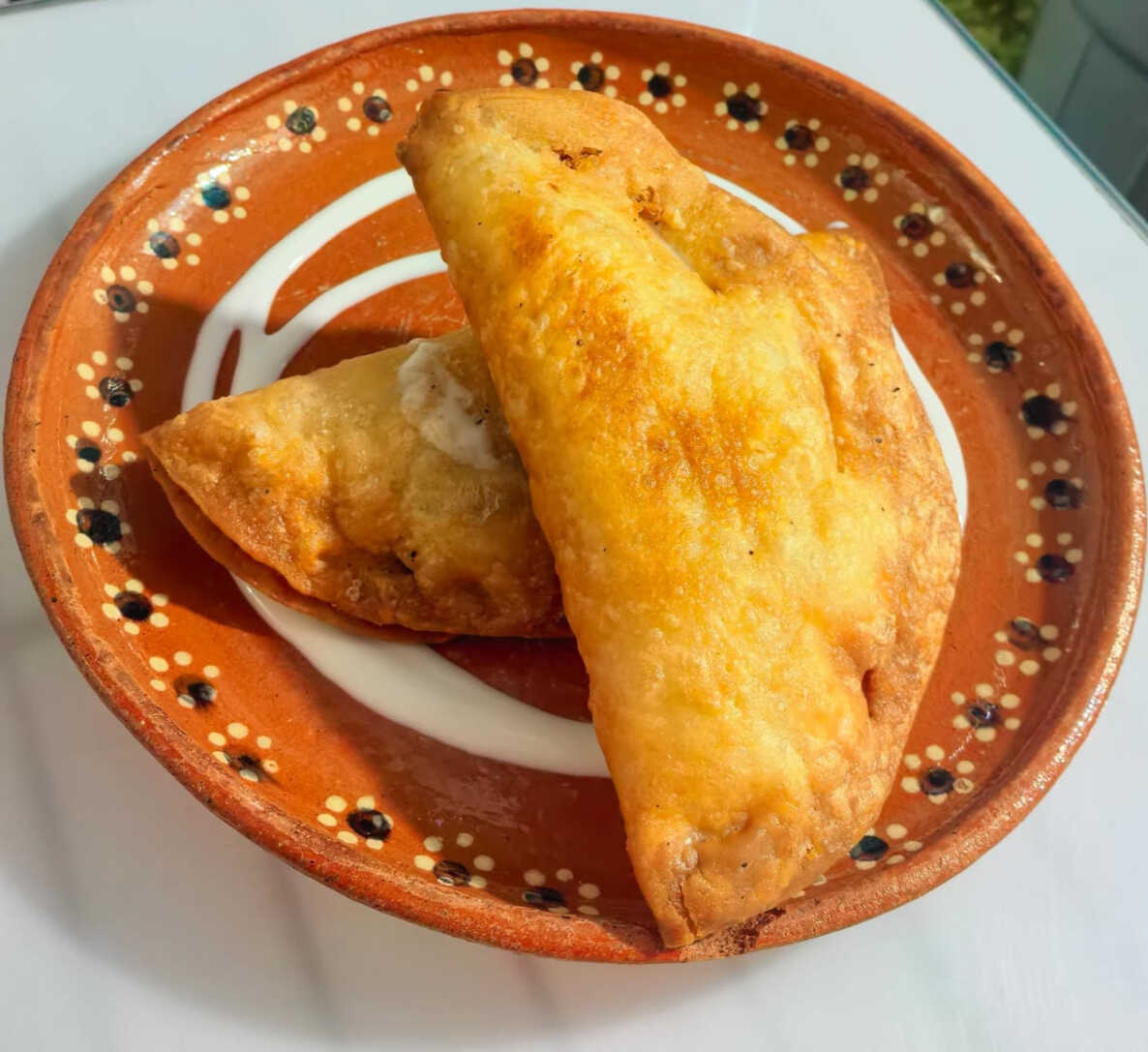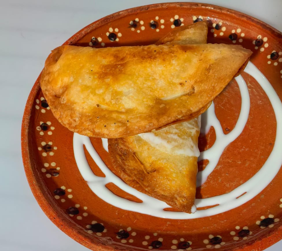 Hecho con masa artesanal acompañado de crema y salsa