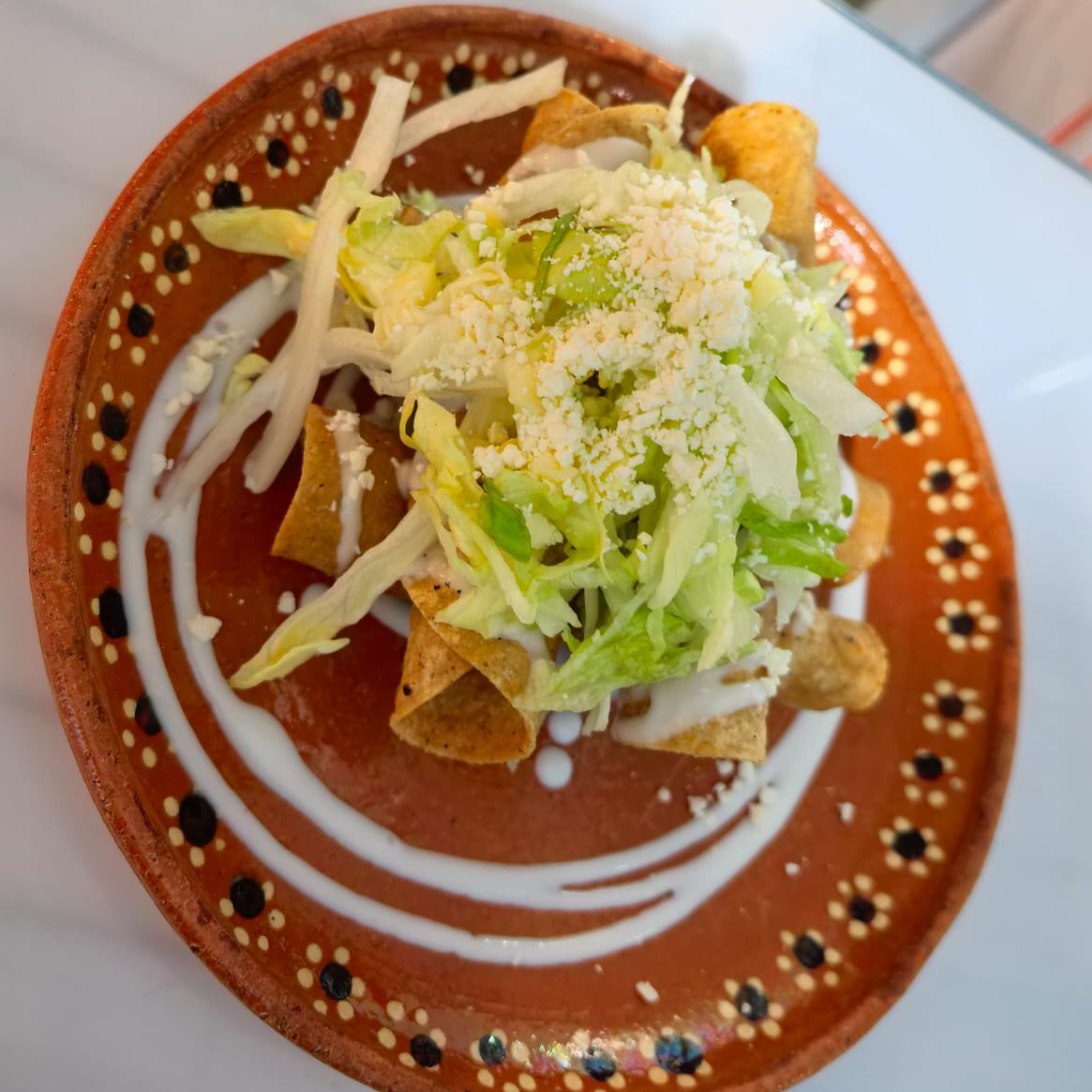 Cuatro tacos fritos a la perfección, servidos con lechuga fresca, crema y salsa. Elige entre pollo o res.