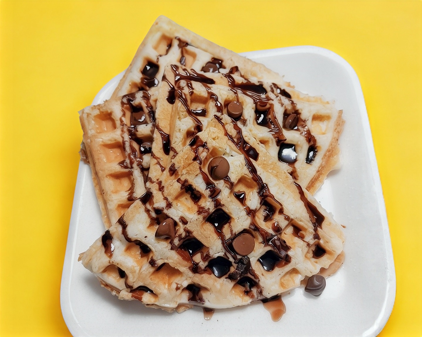 wafle completo en 4 con chocolate liquido (Hershey;s)