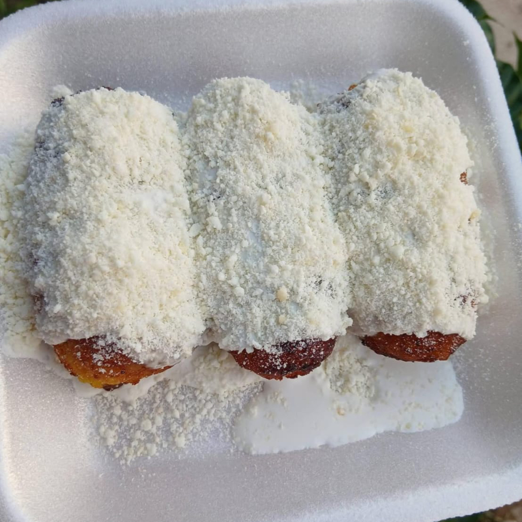 orden de 3 platanitos fritos rellenos de QUESILLO preparados con crema y queso
