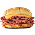 Pan de cebolla, roast beef 226 g calientita y rebanado finamente con salsa de queso cheddar, aderezo red ranch, cebolla morada, jitomate y lechuga.