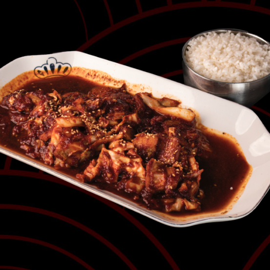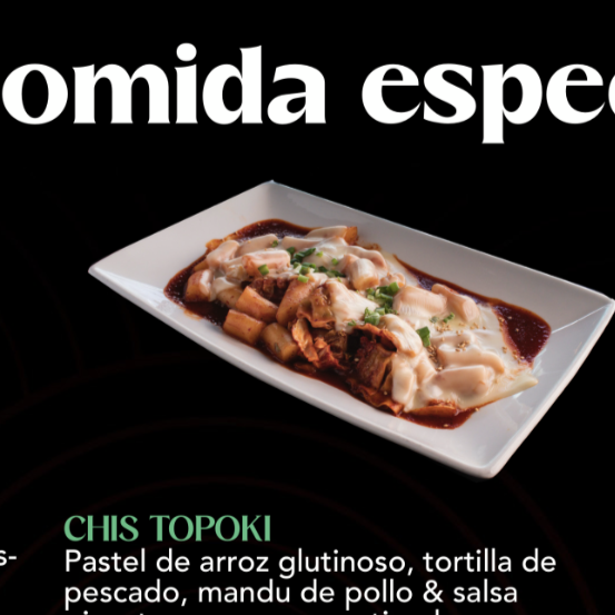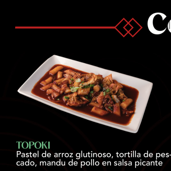 Un platillo picante y dulce, con pastel de arroz glutinoso (tteok), pastel de pescado (eomuk) y andú de pollo, todo bañado en nuestra salsa especial.
