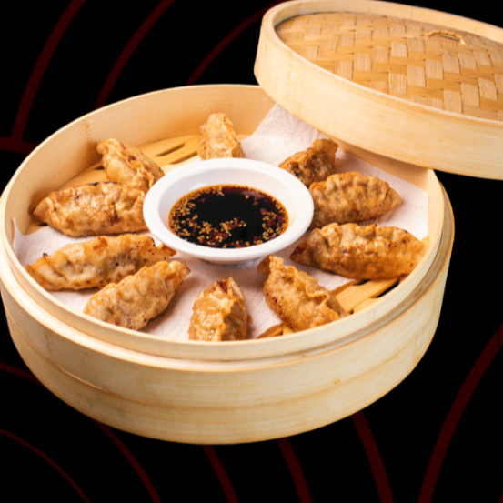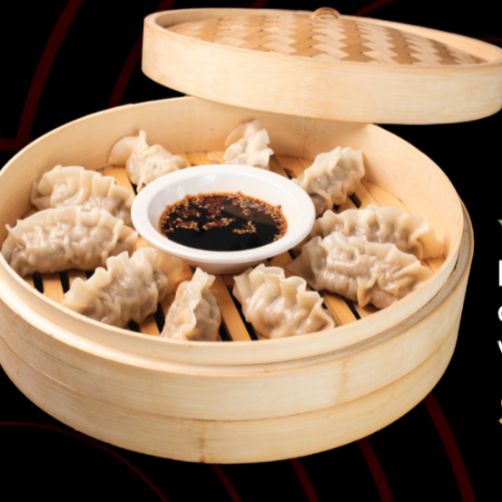 Suaves dumblings al vaor, rellenos dfideos de camote, verduras frescas y carne, con un sabor que te hará sentirte en Corea del Sur.