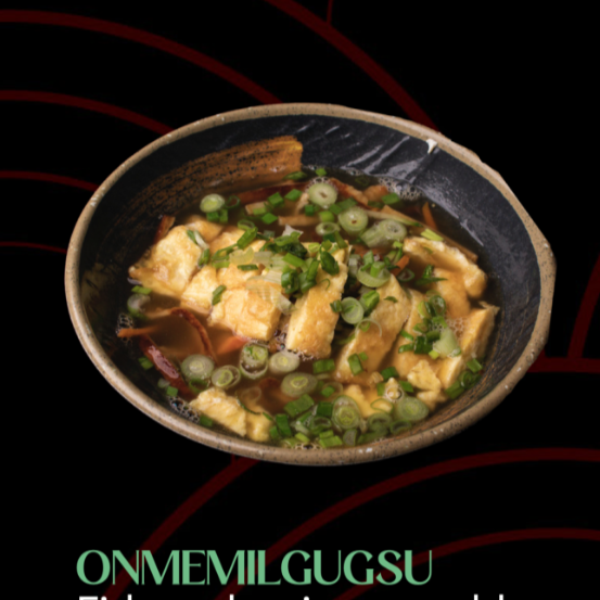 Un platillo tradicional coreano con fideos de camote, verduras y tortilla de pescado, salteados en una salsa de soya que le da un sabor dulce y salado.