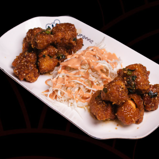 Crujientes trozos de pechuga de pollo fritos a la perfecciónm en nuestra salsa de soya agridulce. Este platillo viene acompañado con col fresca en aderezo.