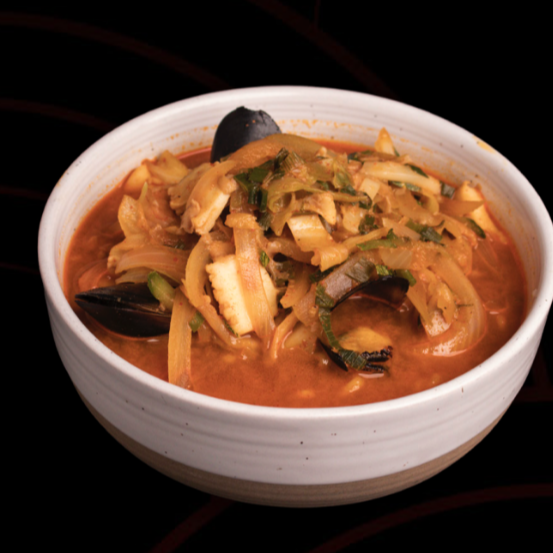 Una sopa picante y sustanciosa, con mejillones frescos en un caldo sabroso y lleno de umami.