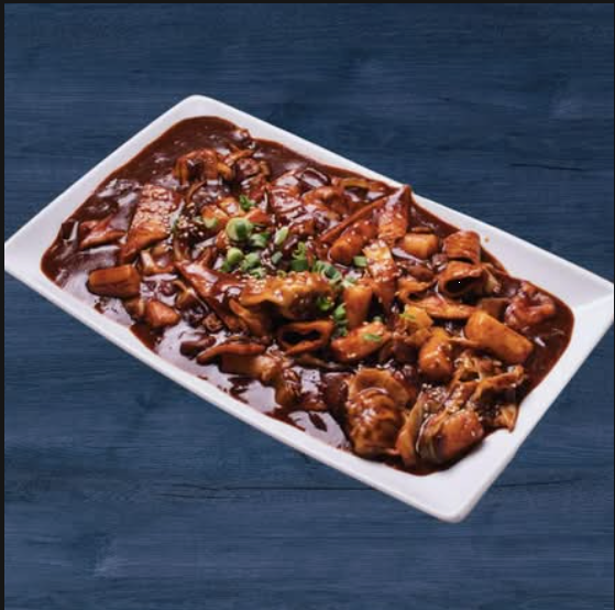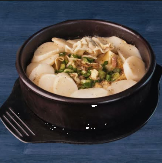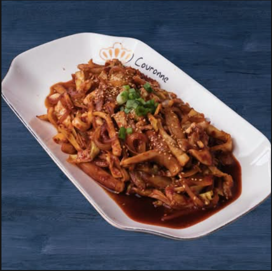 Un platillo picante y dulce, con pastel de arroz glutinoso tteok, pastel de pescado eomuk y mandu de pollo, todo bañado en nuestra salsa especial.