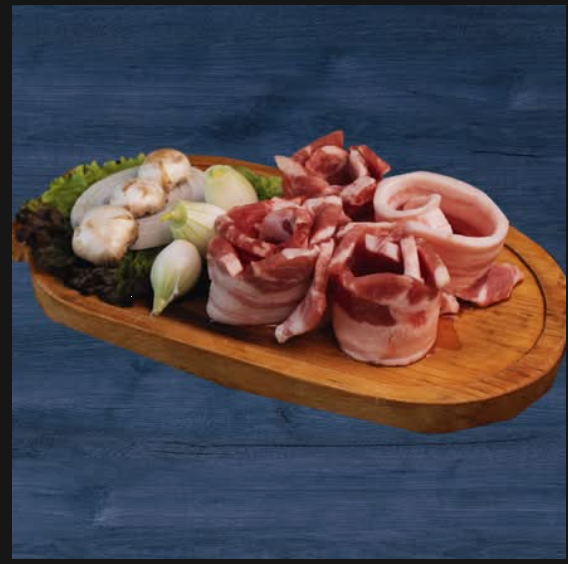Jugoso y crujiente tocino natural, 300 g, cocinado a la perfección. Un platillo icónico de la cocina coreana, con el que sentirás su sabor en cada bocado.