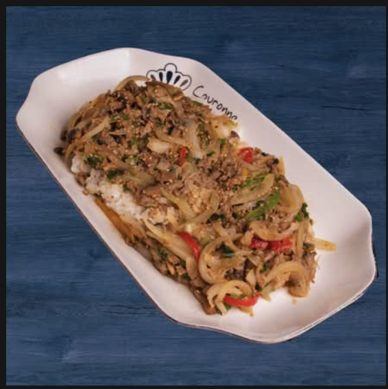 Nuestro bulgogi dopbap es un tazón de arroz al vapor, una cama de arroz suave con una mezcla de vegetales frescos y tiras de carne de res marinada en nuestra deliciosa salsa dulce y salada, inspirada en las recetas de tradición en Corea. Un plato lleno de sabor y perfecto para una comida rápida.
