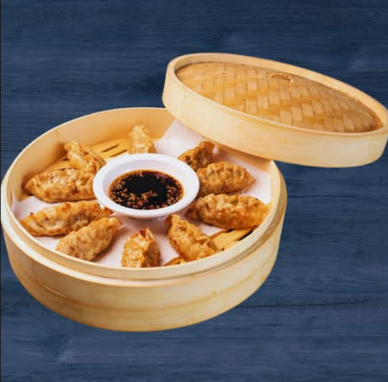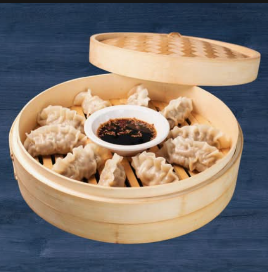 Suaves dumplings al vapor, rellenos de fideos de camote, verduras frescas y carne, con un sabor que te hará sentirte en Corea del Sur.