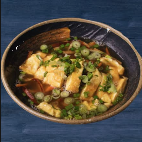Nuestra sopa de verduras con tofu en un caldo picante y sustancioso. Un platillo reconfortante, con una mezcla de sabores que realzan los trozos de nabo y la falda de res.