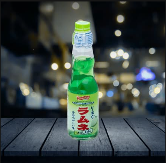 Disfruta del sabor dulce e intenso a melón en esta soda burbujeante. Es la bebida perfecta para un antojo diferente y efervescente. ¡Una experiencia única y divertida en cada botella! ¡El refresco japonés más icónico con un sabor que te encantará! La Ramune es famosa por su botella de vidrio sellada con una canica que debes empujar para disfrutar de la bebida.