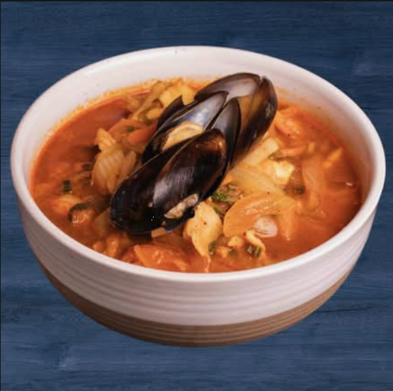 Una sopa picante y sustanciosa, con mejillones frescos en un caldo sabroso y lleno de umami.