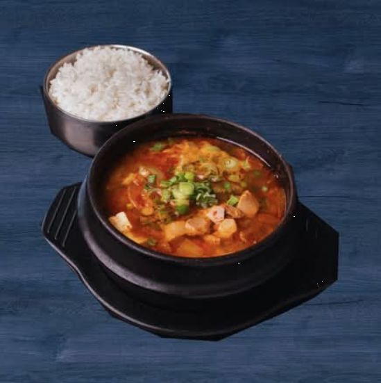 Un guiso tradicional coreano con un sabor profundo, picante y agridulce, que combina kimchi fermentado, atún y tofu en un caldo sustancioso.