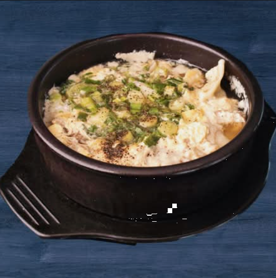 Un caldo caliente y reconfortante con mandu de pollo, tiernos trozos de carne de res y huevo.