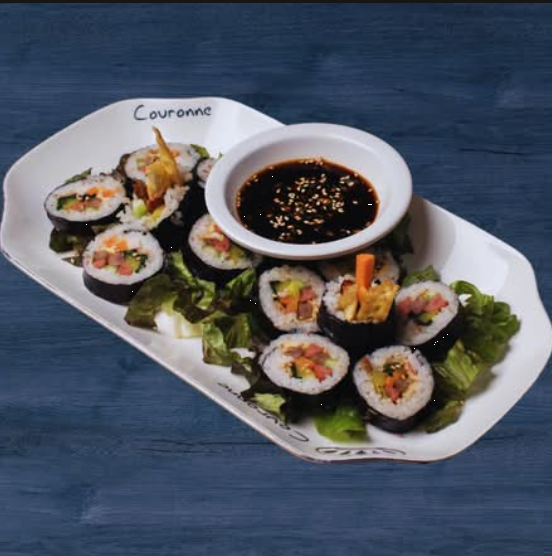 Rollos de tradición coreana, rellenos de una deliciosa combinación de arroz, carne y vegetales. Este platillo es ideal para cualquier momento del día, con un sabor que te sorprenderá.