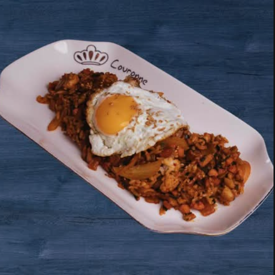 Nuestro arroz frito con kimchi cocido y jugoso tocino. Un plato reconfortante, con sabores audaces y la combinación perfecta del picante fermentado del kimchi con la salinidad del tocino.