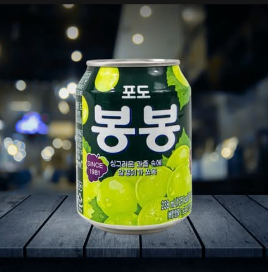 ¡El jugo coreano dulce y divertido! La bebida Bong Bong es famosa por su sabor refrescante a uva verde y su característica única: contiene trozos flotantes de pulpa de uva real. Esta pulpa le da una textura divertida y auténtica, haciendo que cada sorbo sea una experiencia. Es el acompañamiento dulce y afrutado perfecto. ¡Recuerda agitar la lata antes de disfrutar!