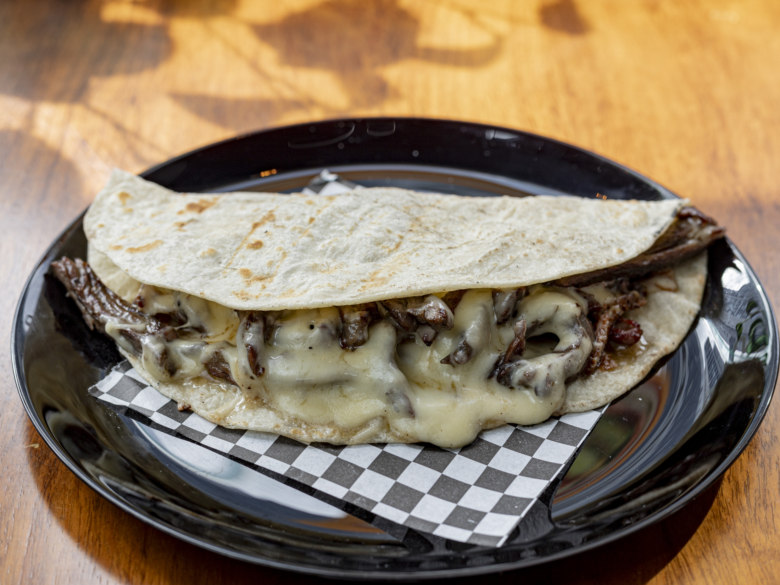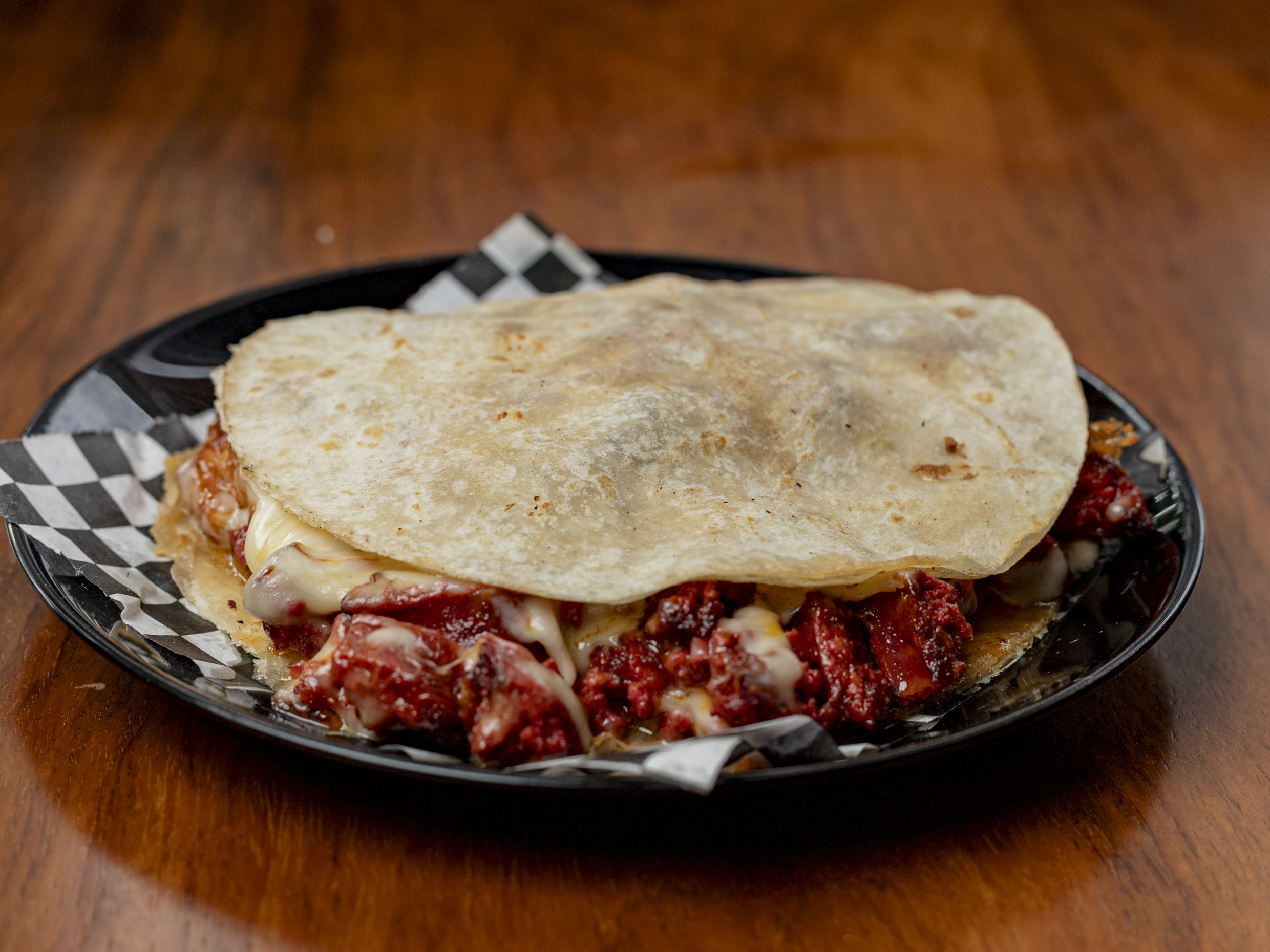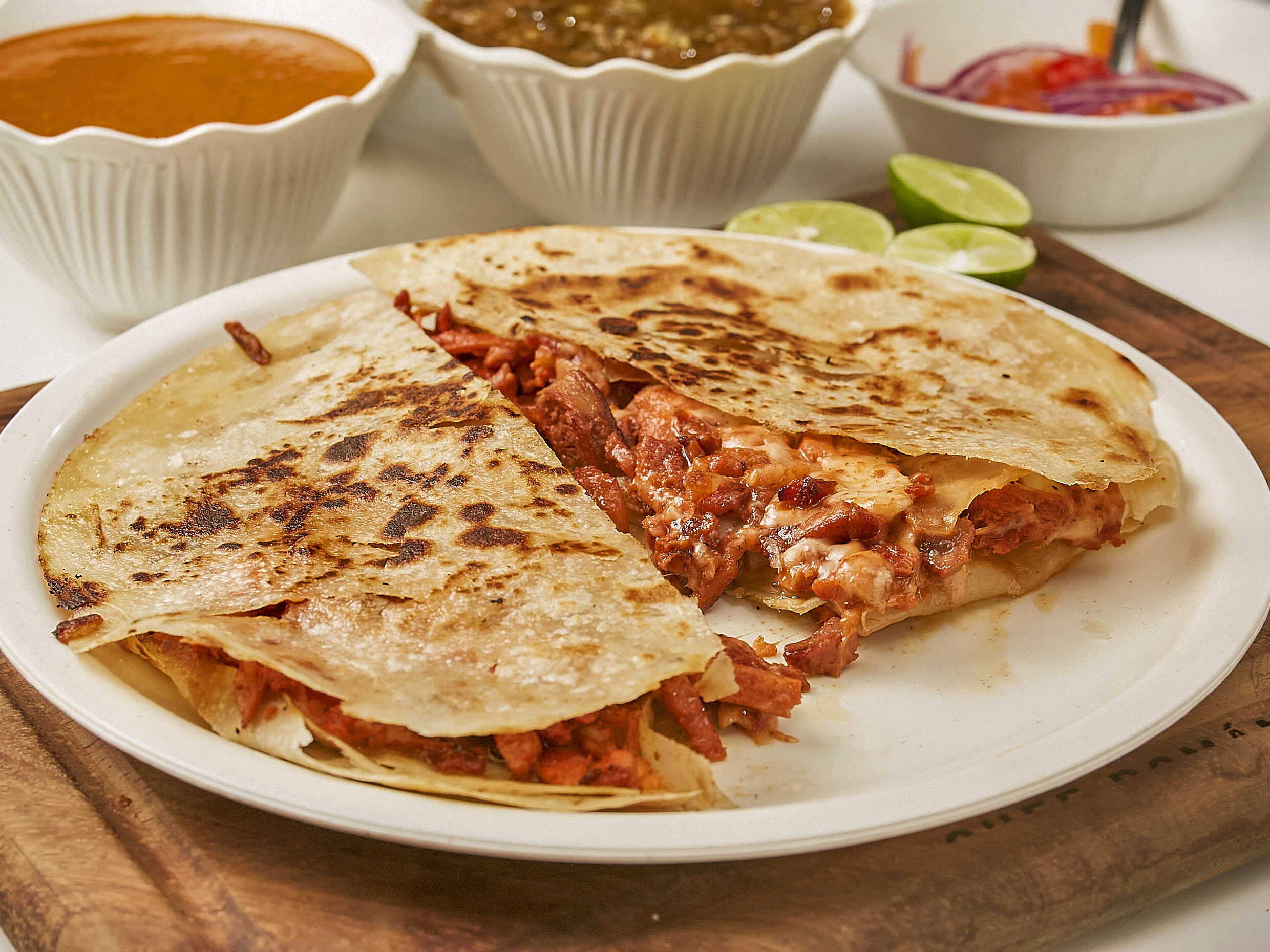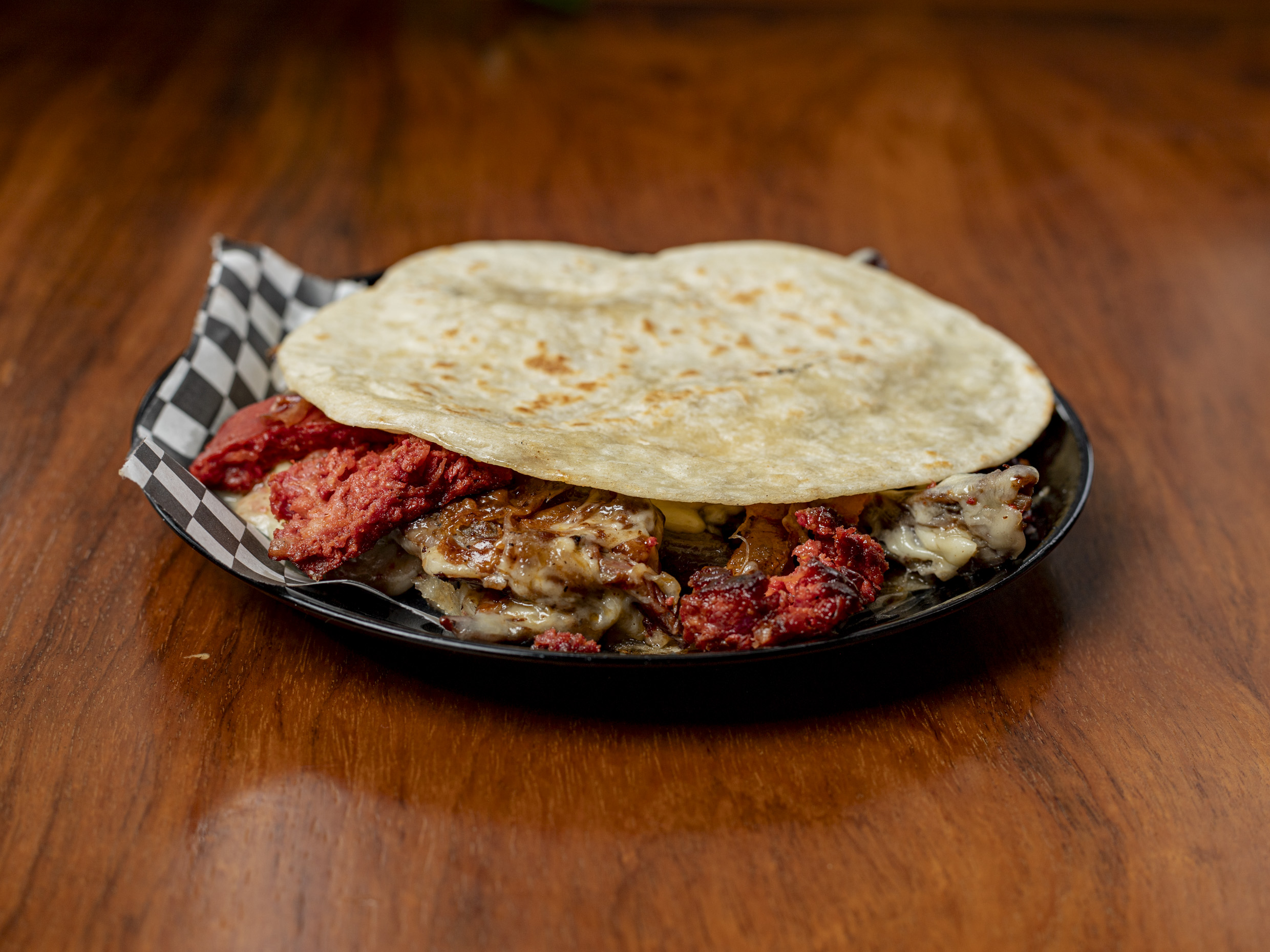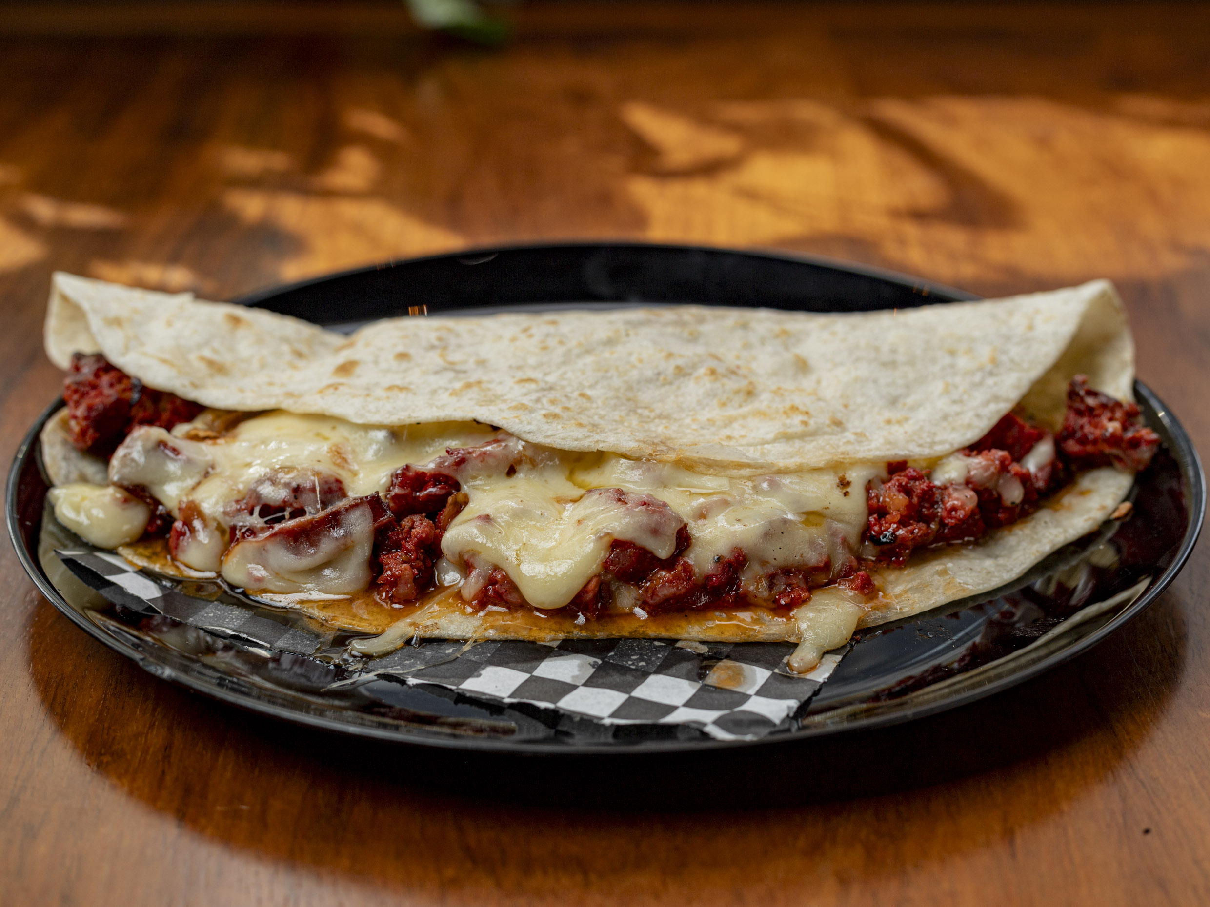 Tortilla de harina rellena de queso, combinada con cualquier especialidad a elegir.