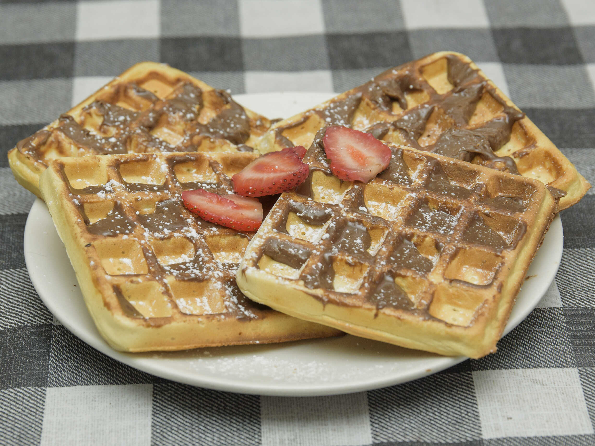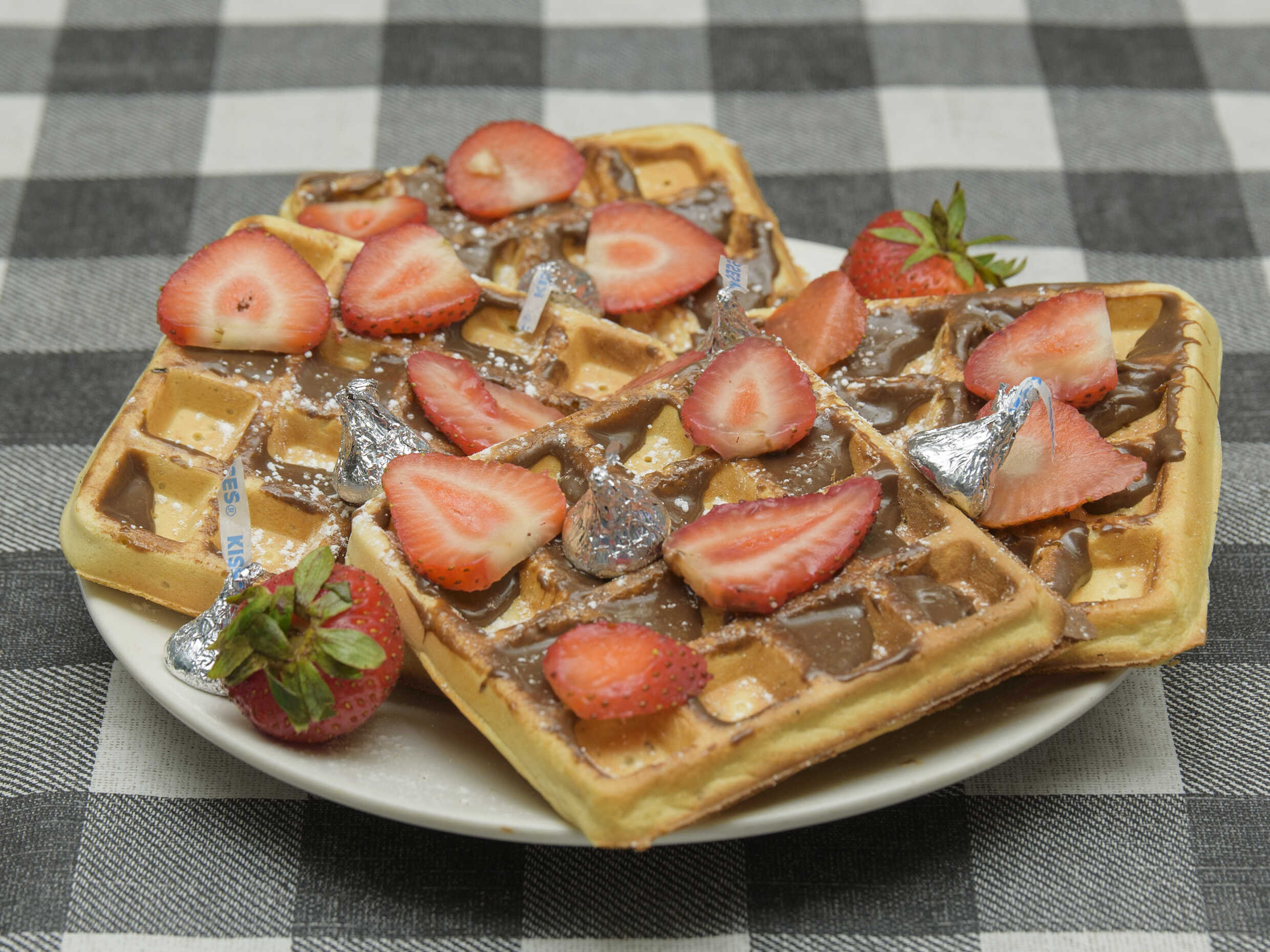 Delicioso waffle con tu fruta y dulce favorito, delicioso en gusto y vista.
