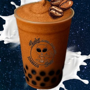frappe : base leche deslactozada , hielo , 1 expresso de cafe , saborizante de moka , agrega tapioca negra o perla explosiva de tu eleccion , el vaso es de 16 onzas reutilizable y amigable con el ambiente , ademas es tapa termosellada y se empaqueta para que llegue perfecto a su destino final.