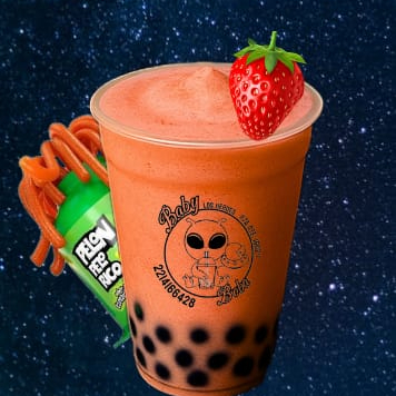 frappe : base tee verde , hielo , fresa y pelon pelo rico , agrega tapioca negra o perla explosiva de tu eleccion , el vaso es reutilizable y amigable con el ambiente , ademas es tapa termosellada y se empaqueta para que llegue perfecto a su destino final.