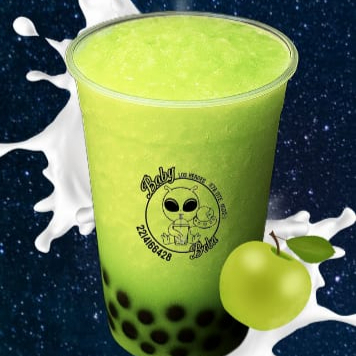 frappe : base tee verde , hielo , saborizante manzana verde , agrega tapioca negra o perla explosiva de tu eleccion , el vaso es reutilizable y amigable con el ambiente , ademas es tapa termosellada y se empaqueta para que llegue perfecto a su destino final.