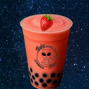 frappe : base tee verde , hielo , saborizante de fresa , agrega tapioca negra o perla explosiva de tu eleccion , el vaso es reutilizable y amigable con el ambiente , ademas es tapa termosellada y se empaqueta para que llegue perfecto a su destino final.