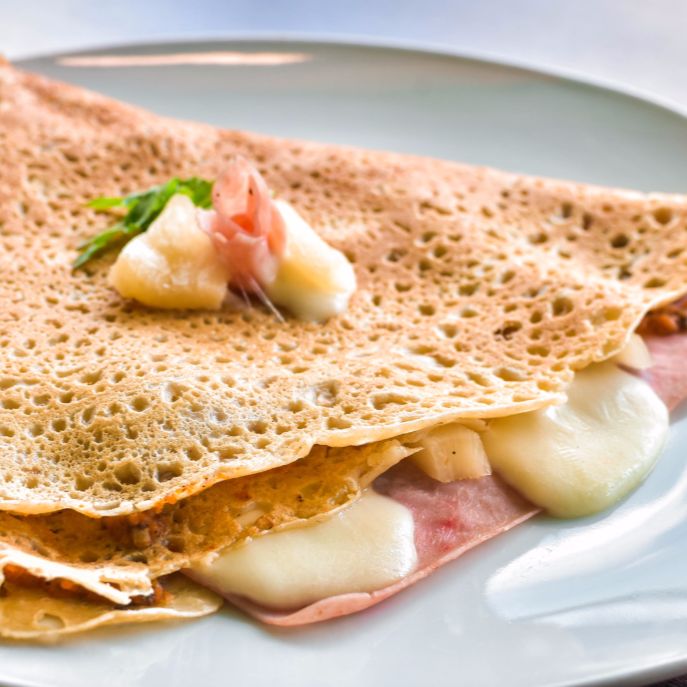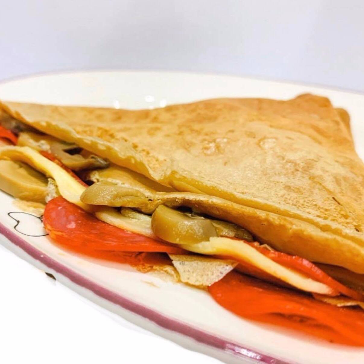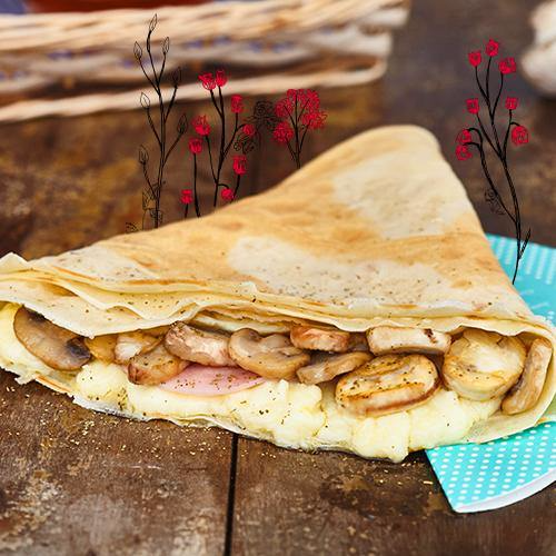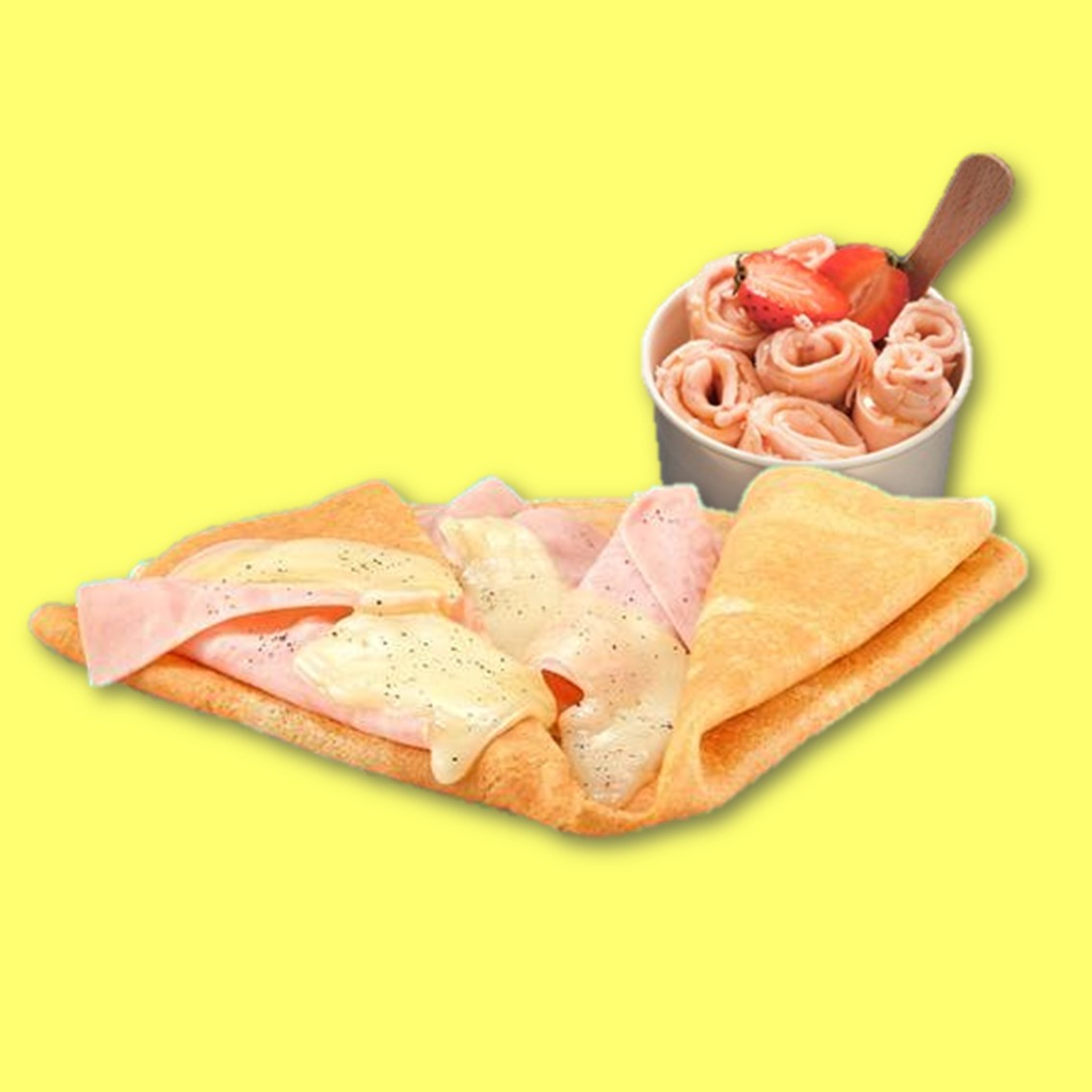 Crepa salada a elegir + helado en rollo a elegir, a precio especial.