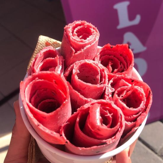 Helado en rollo de base cremosa con queso philadelphia, zarzamoras, mermelada de zarzamora y 2 toppings a elegir.