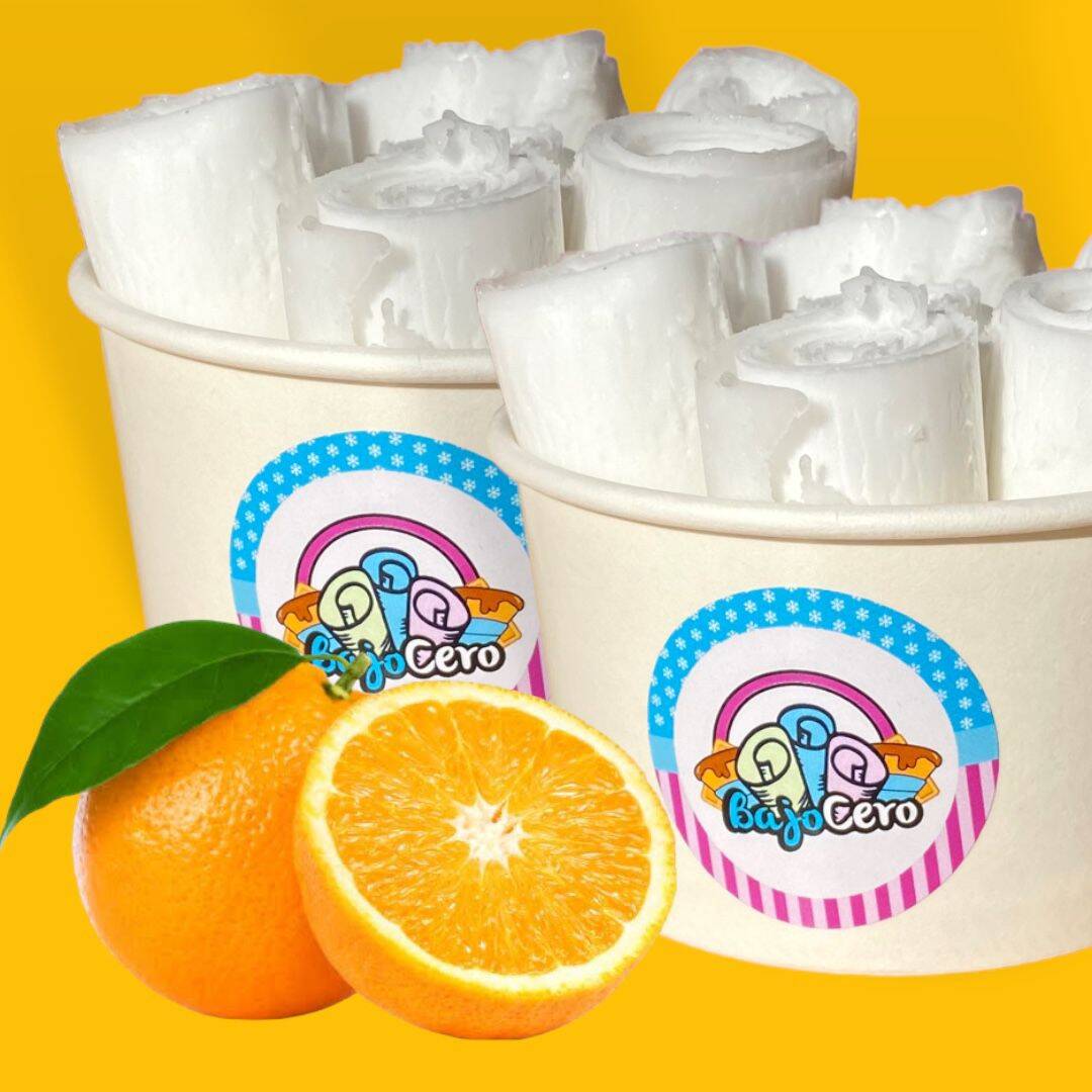 2 deliciosos y refrescantes helados en rollo sabor naranja con jugo de naranja natural.