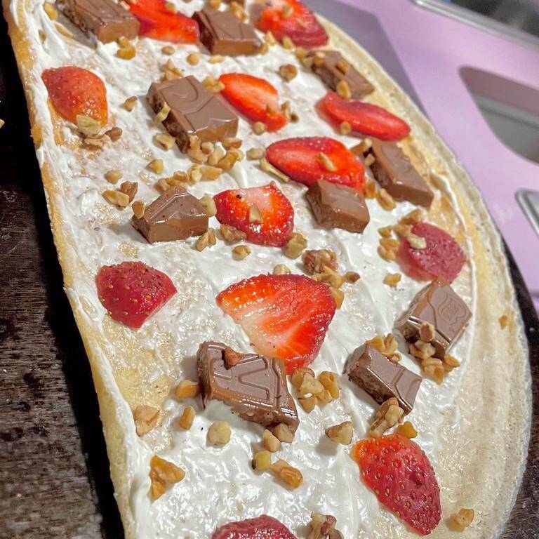 Helado en rollo de base cremosa con nutella, chocolate ferrero y 3 toppings a elegir.