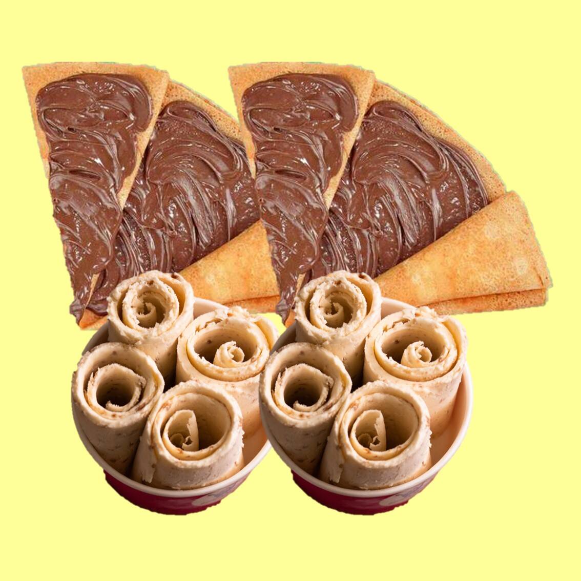 2 crepas de nutella + 2 helados en rollo de vainilla a precio especial.