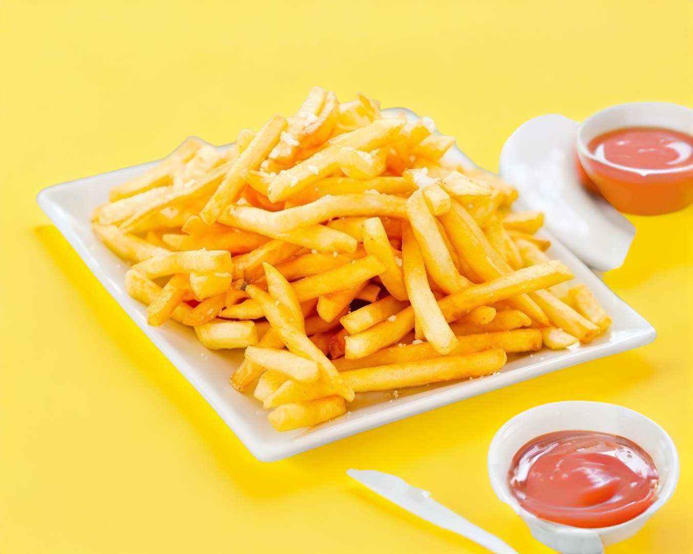 200grms de papa gajo y 150gms de papa francesa; incluye catsup y queso