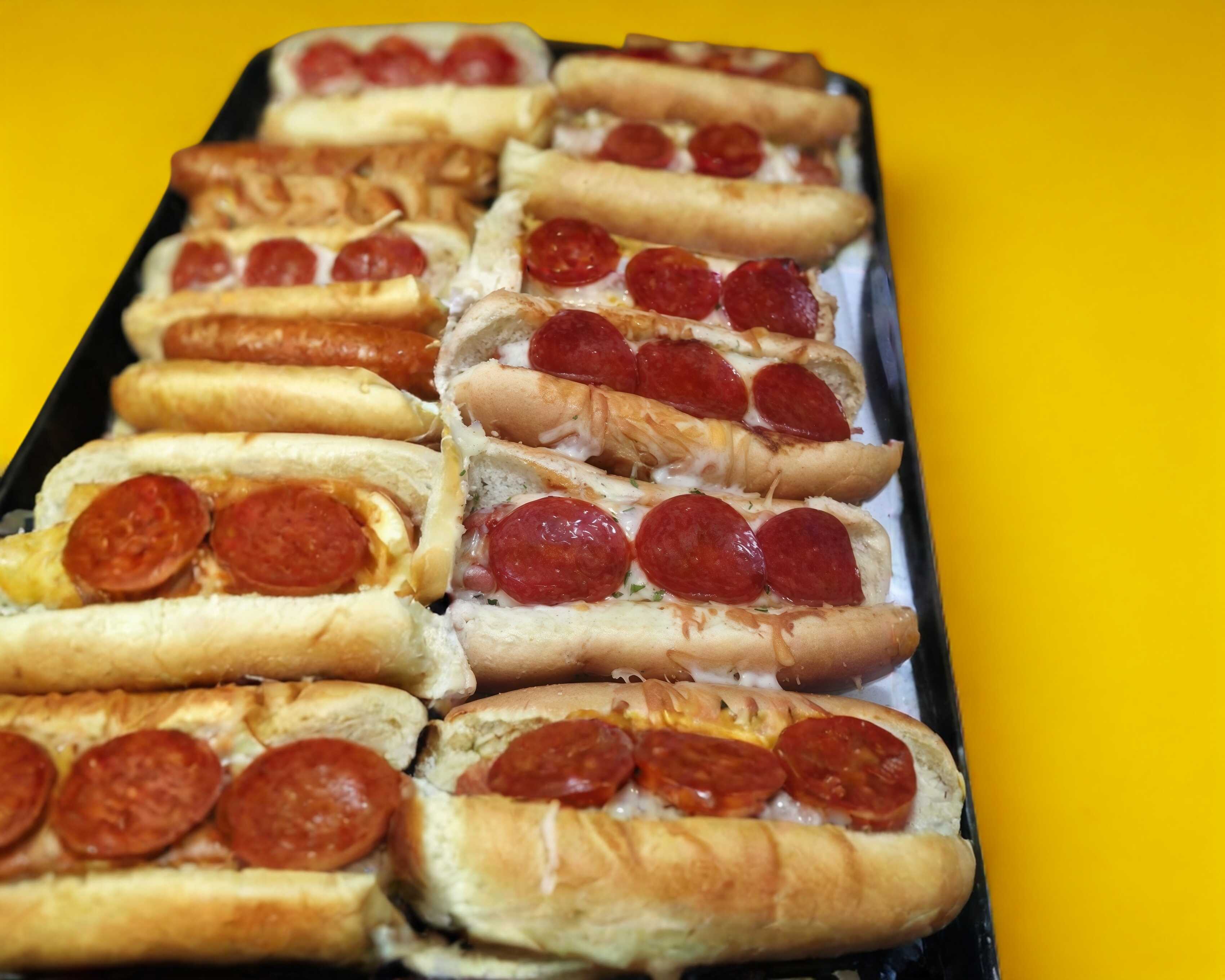 Salchicha con tocino, piña, tocino, quezo mozarella, pepperoni; INCLUYE PAPAS