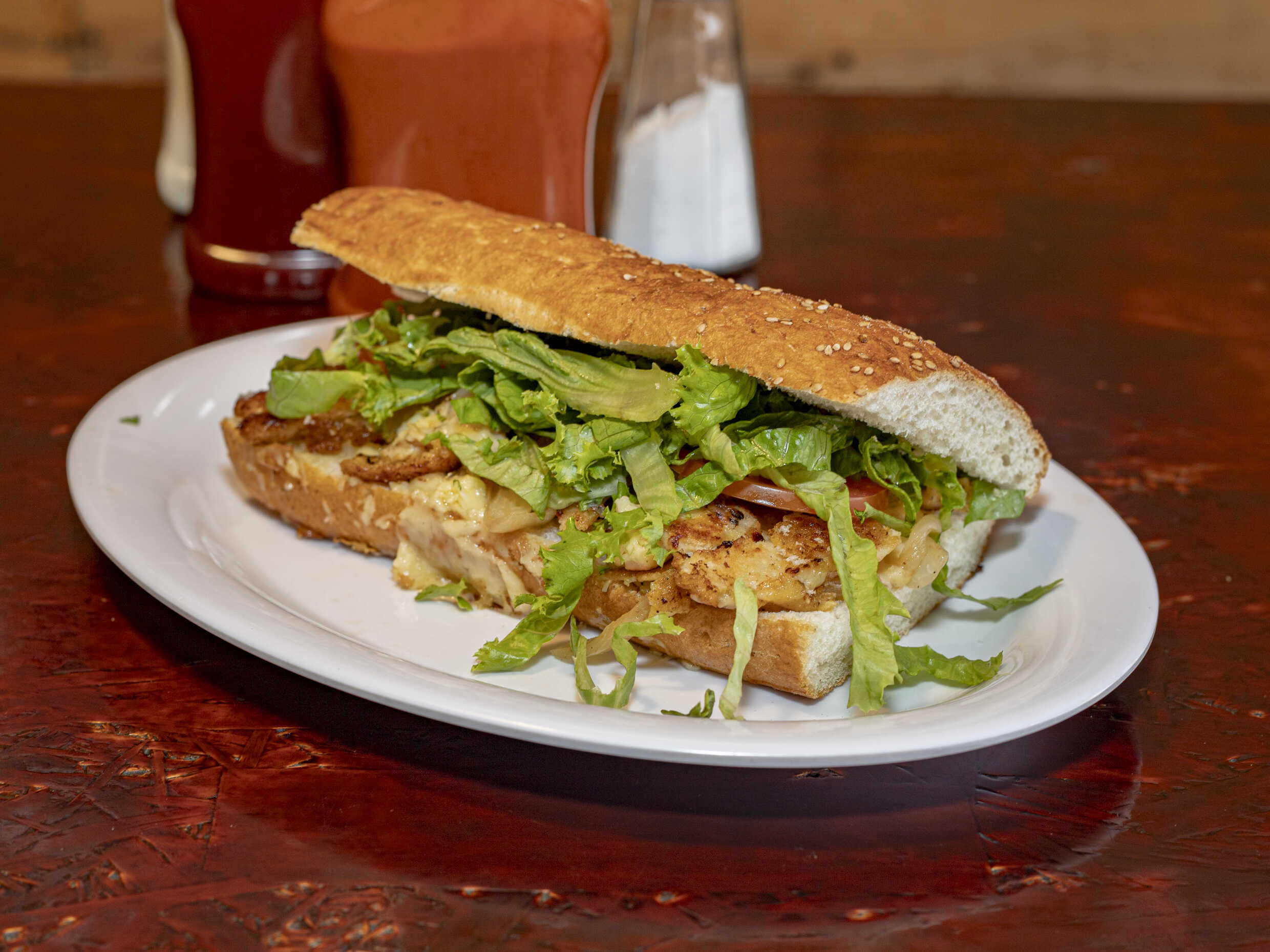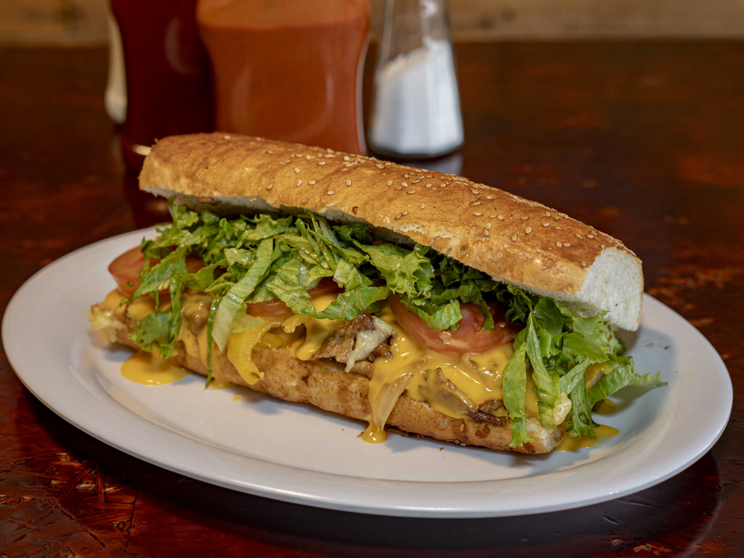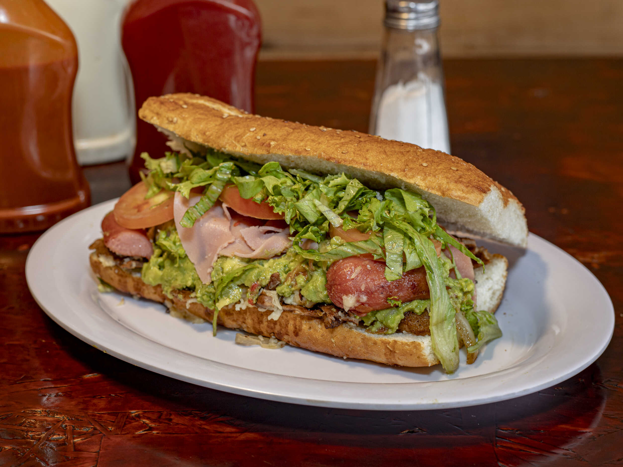 Todos los pepitos de componen de carne de res asada, cebolla caramelizada, queso manchego, jitomate, chile, lechuga y mayonesa.