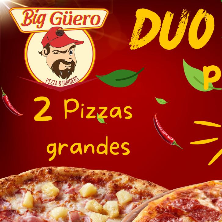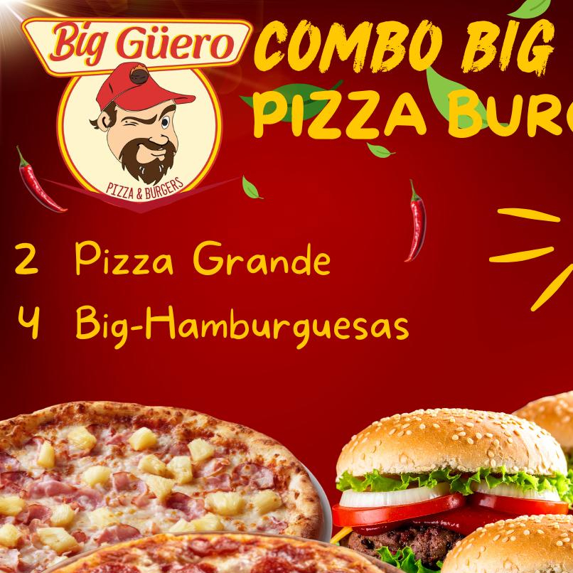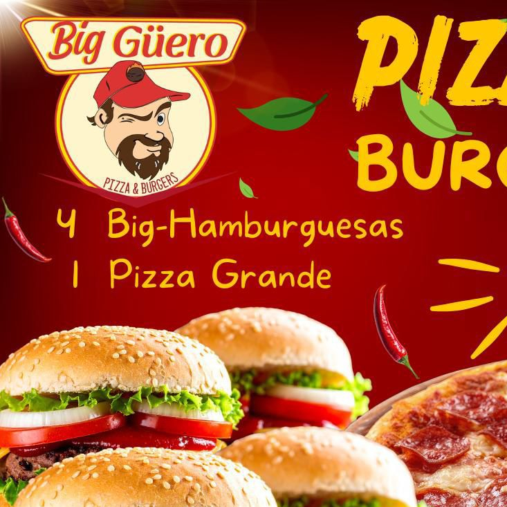 2 Big Tociburgers, 2 Big burger hawaianas, 2 pizzas grandes 35 cm cada una.