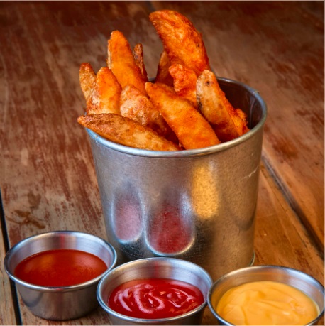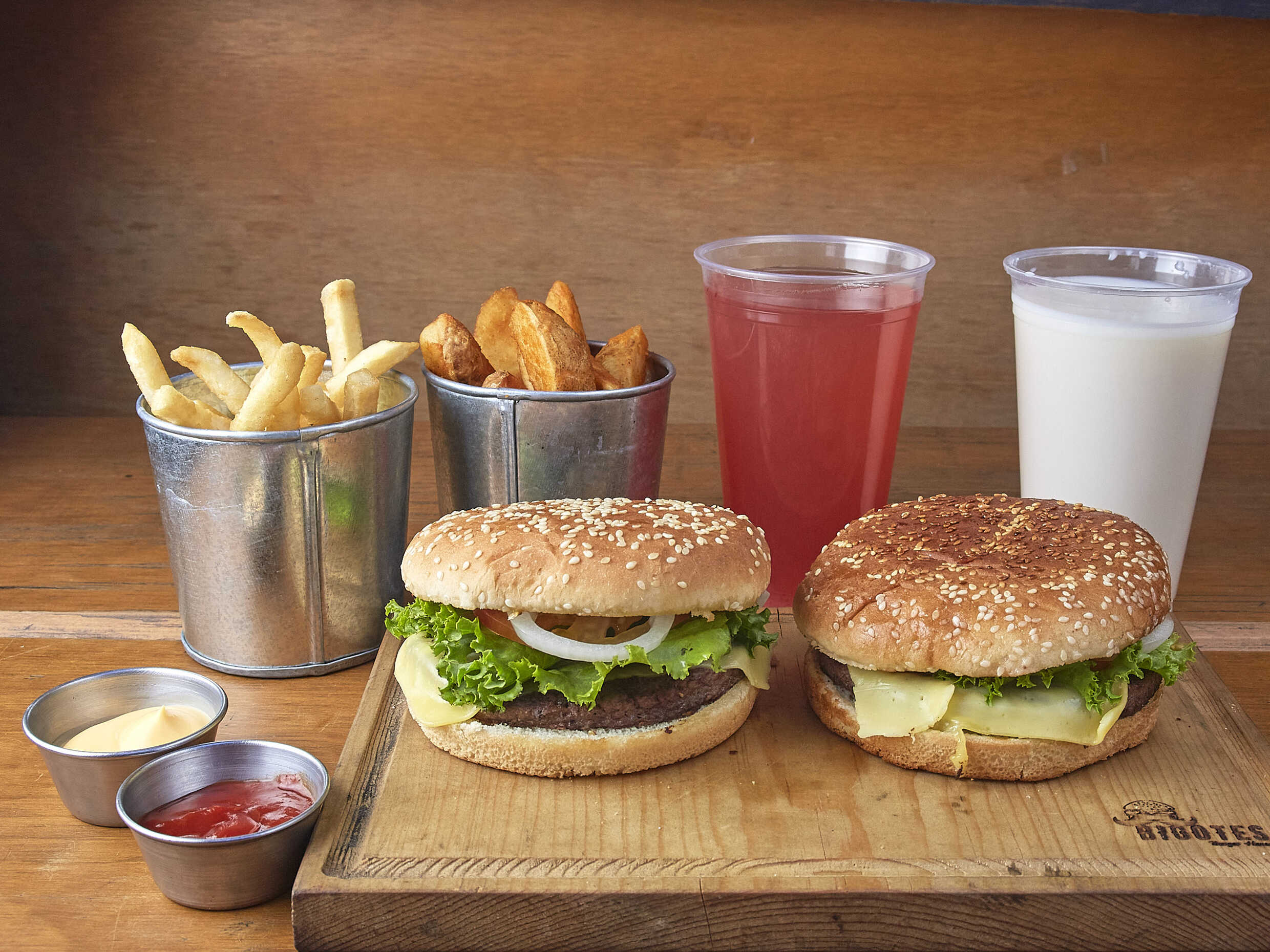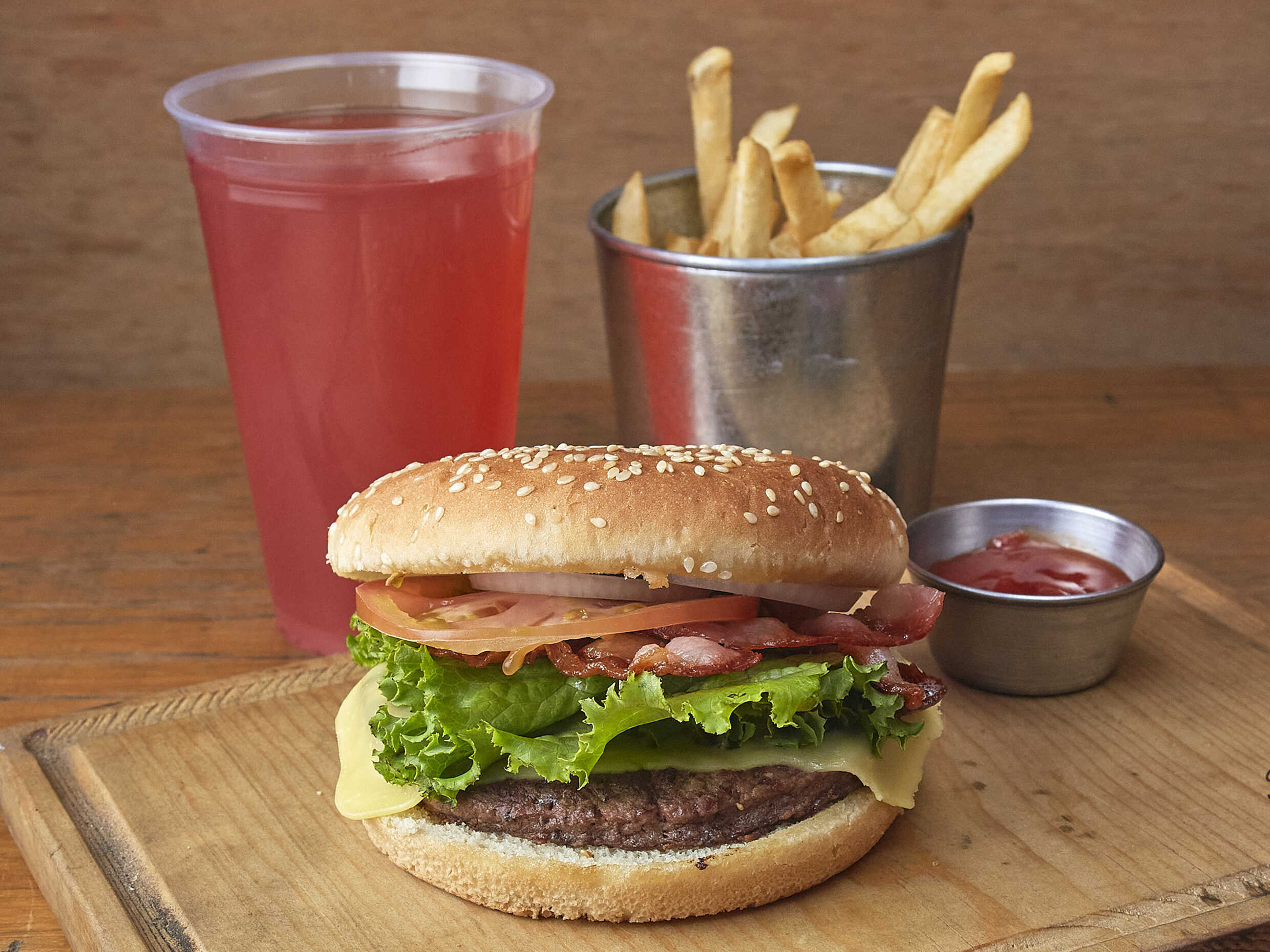 Hamburguesa a elegir, papas a la francesa y bebida.